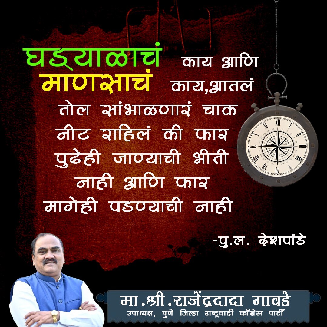 Rajendra Popatrao Gawade (Raju Dada) is a visionary and calm community leader known for his balanced approach to development and people-centric governance. A strong supporter of the Nationalist Congress Party (NCP) under Deputy Chief Minister Ajit Pawar, he believes in bringing progressive change through infrastructure, education, and empowerment of local citizens.